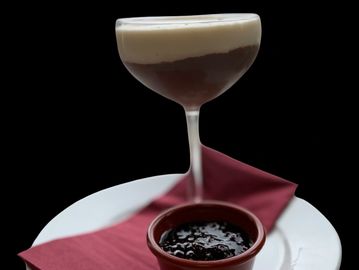 Dark Chocolate Mousse, Cardamon White Chocolate Mousse & Berry Compote